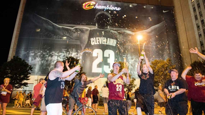 In the 24 hours following Game 7, the videos poured onto social media. Teenage boys leaping in unison as they watched the final seconds. Strangers hugging in a mass of humanity outside the team's arena. A shirtless man doing pullups on a traffic light he reached from the top of a commandeered fire truck. Longtime Cavs broadcasters Austin Carr and Fred McLeod weeping in the press box. People parking their cars and walking a mile down a highway just to see the team's plane land.